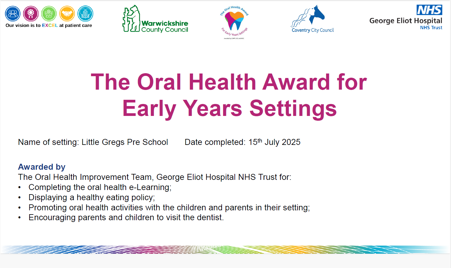 We are very proud of the level of care and education we provide at Little Gregs Nursery.